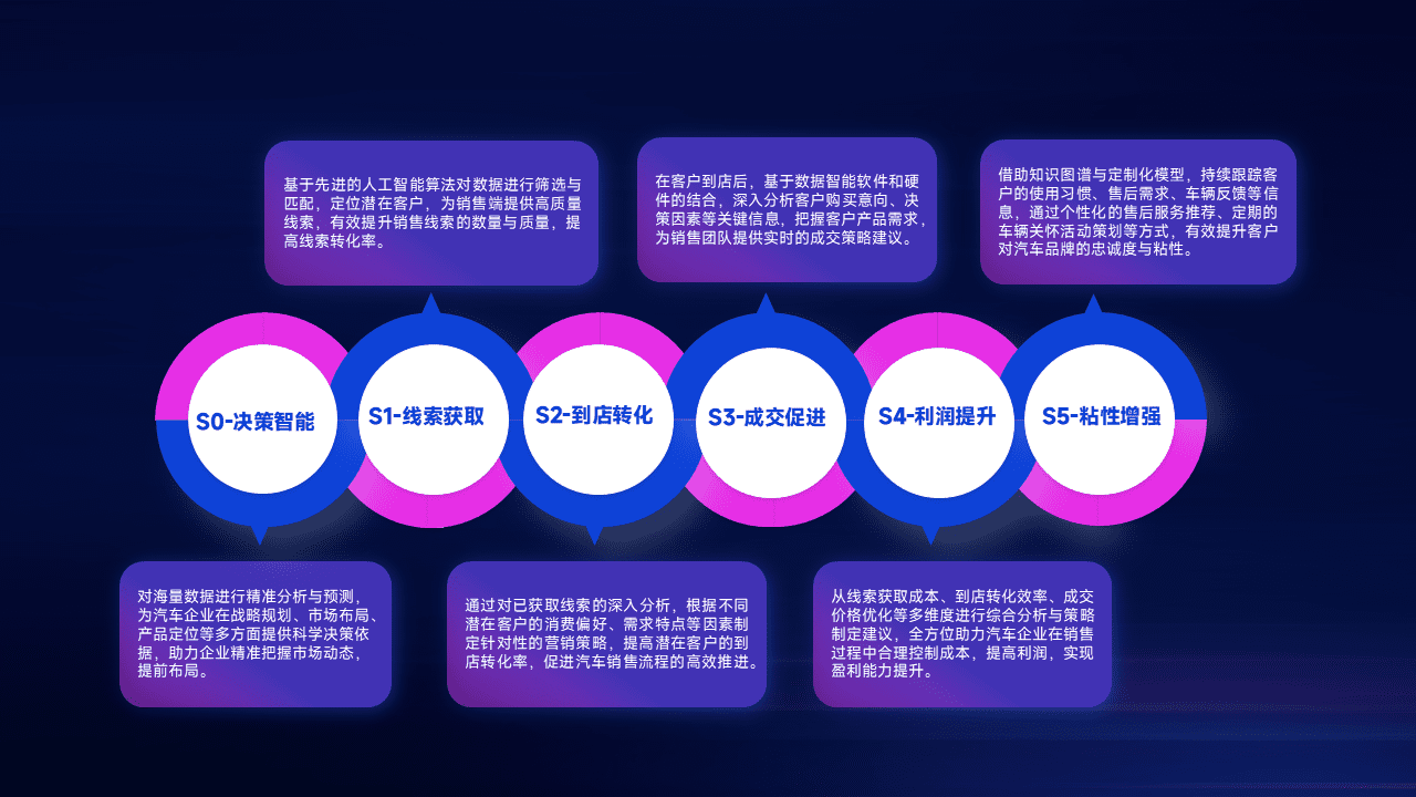 通过拓宽潜在客户来源、、优化线索分配并提高到店转化率,,以增强销售效率。。。。同时,,,利用线索数据不断优化分析模型,,有效提升转化率,,,扩大营销影响力。。。